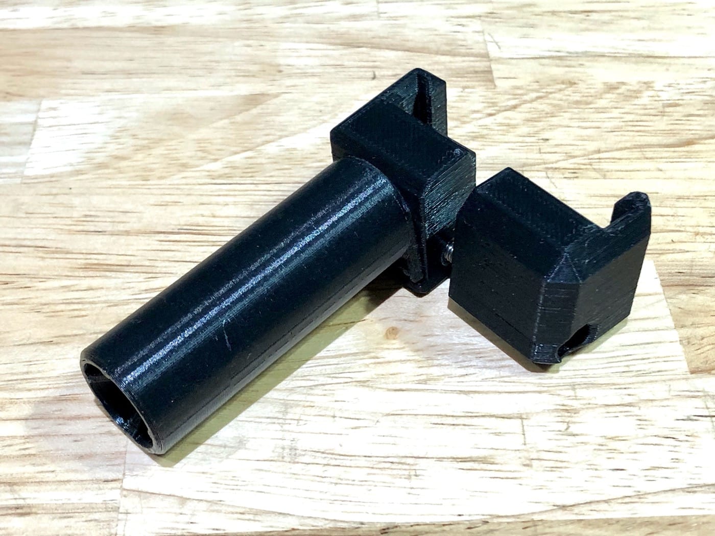 ドリンクホルダーの取り付け場所を脇にずらしてみようと思い立ち、3Dプリンターでサイドのアルミフレームに取り付けるクランプバーを出力。