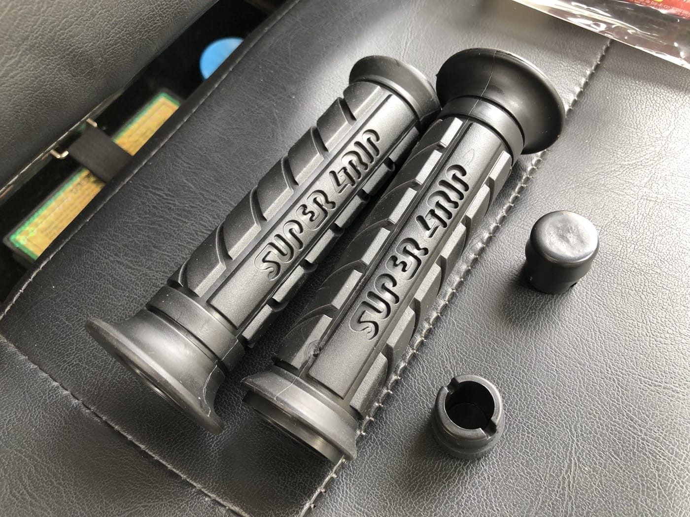 (後で気付いたが、純正のスロットルパイプを予備として車載しておくなら、スロットルパイプ側のグリップは付けたままにしておいた方がよかった)