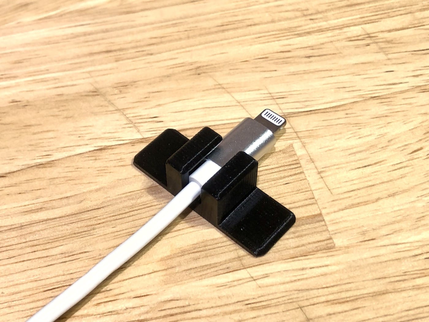 必要になったので、USBケーブルフックの3Dプリンタ用データ(usb_cable_hook.stl)もいっしょに公開しておいた。どこかに両面テープで貼り付けて使う。