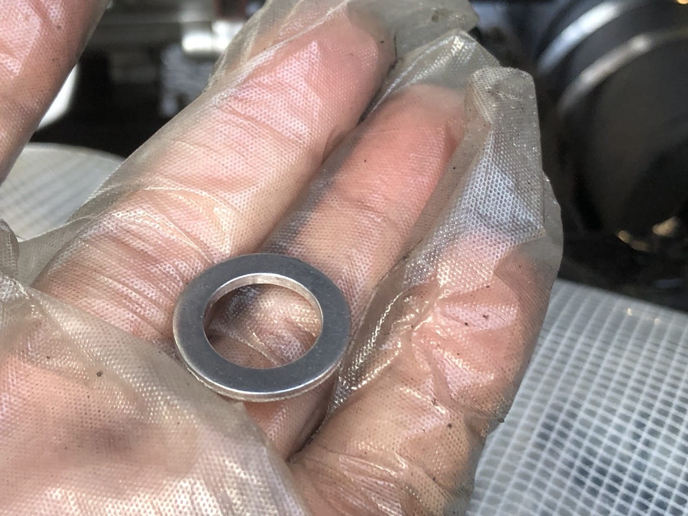 前側にはワッシャーが入っているが、後ろ側には入っていないので、用意したドレンパッキンを追加するのだ。これでガタが減る。