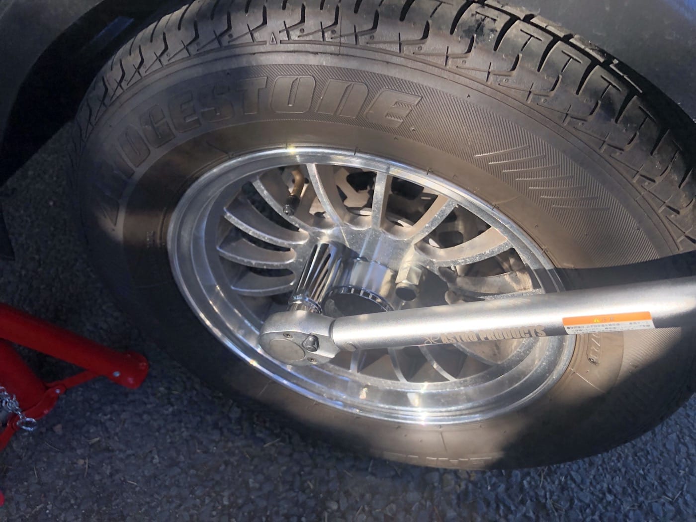 ホイール取り付け時のホイールナットは、トルクレンチを使って締める。