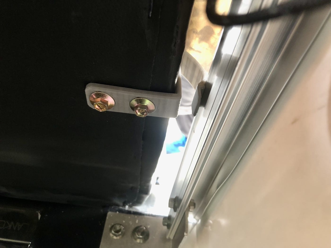 ヒンジの車体側は、使われているネジをそのまま流用したかったので、ネジが効く範囲の嵩上げにとどめた。