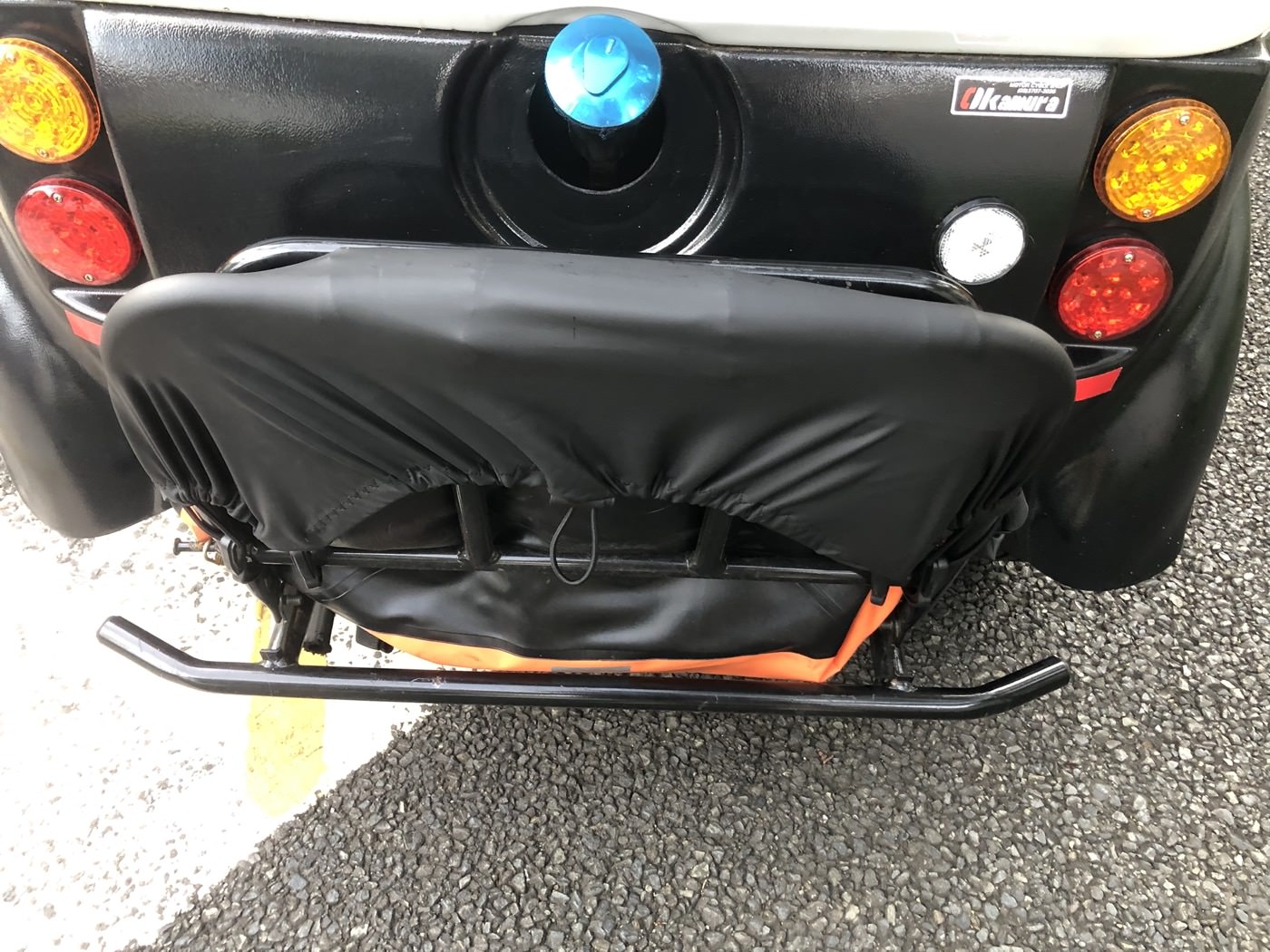 背もたれの後ろに空間があるので、背もたれの後ろに荷締めベルトを通し、箱を共締めして滑り落ち防止を図り、その箱の中に荷物を積載するというのが、そのスペースの基本的活用方針となるだろう。