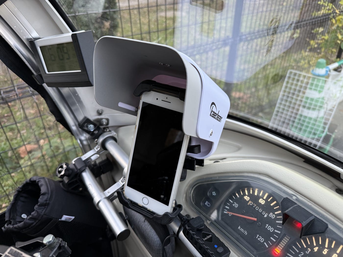 スマートフォンホルダーを取り付けたクランプバーについては、以下の記事に詳細を書いている。