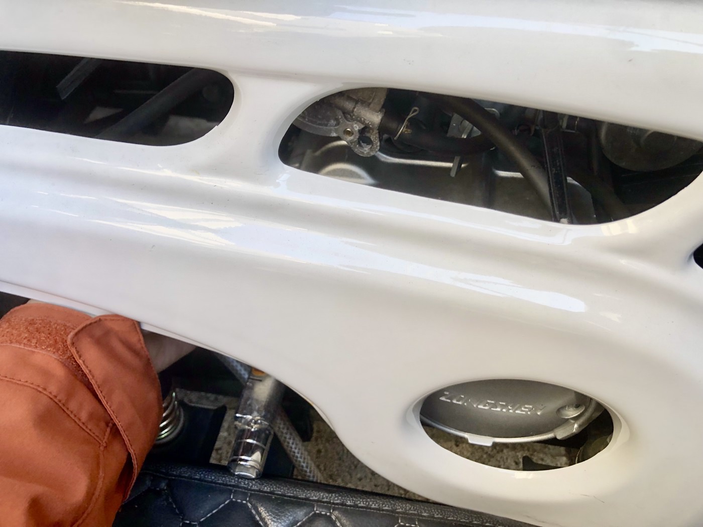 サイドカバーの下からも手が届くが、オイルレベルゲージを抜き取るのが困難かもしれない。