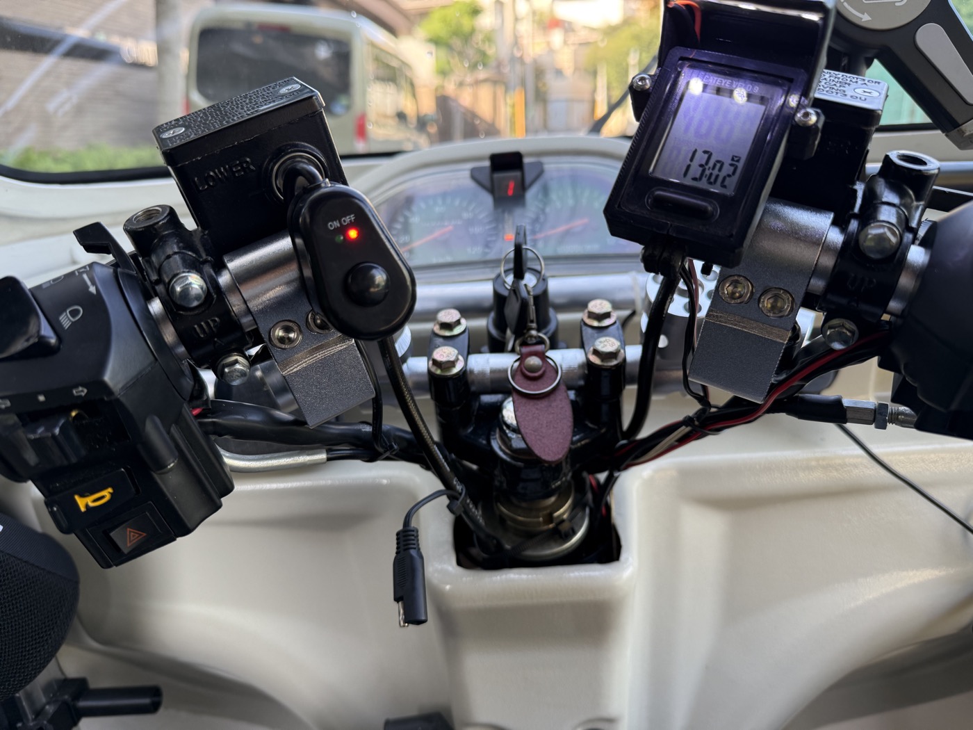 これができるのも、セパレートハンドルキットと、メーター下に取り付けたクランプバーのおかげだ。