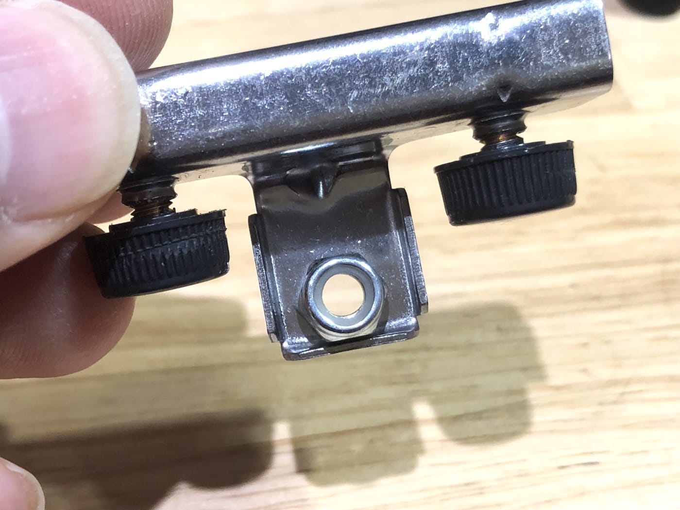少しドリルでさらうとM5のボルトが入るが、ステンレス鋼は非常に硬く、普通はステンレス鋼対応のドリルなど家にないはずで、使えるのはM4までのネジだと思っていた方がいい。
